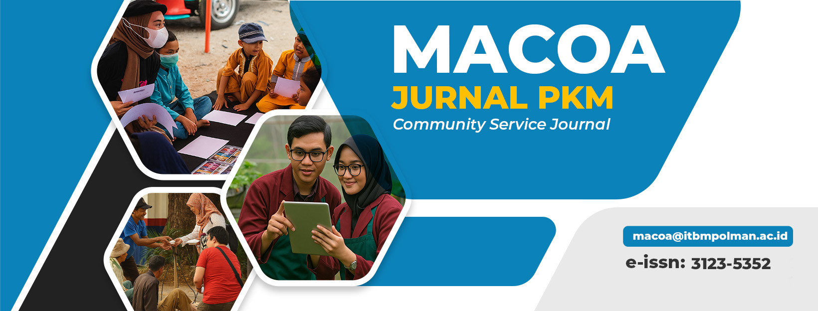 Macoa : Jurnal Pengabdian kepada Masyarakat adalah jurnal ilmiah yang diterbitkan tiga kali dalam setahun, yaitu pada bulan Januari, Mei, dan September, oleh Pusat Penelitian dan Pengabdian kepada Masyarakat (PPPM) Institut Teknologi dan Bisnis Muhammadiyah Polewali Mandar (ITBM Polman).